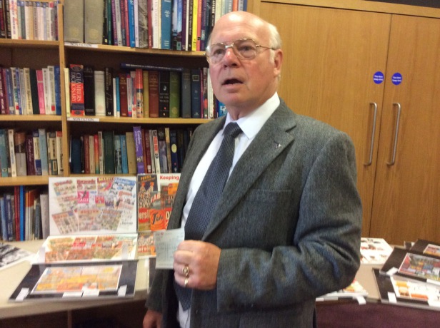 W. Bro. Brian Downes is seen below representing REMAP, which is a charity whose aim is to make and adapt equipment for disabled people to help make their lives easier. He was in attendance to present twelve jigsaws which had been specially made by the charity to be suitable for dementia sufferers. Each one being self- contained in its own folder which also served as a surface for the jigsaw to be completed on and contained a frame which holds the puzzle in place. Many of the jigsaws had pictures of older everyday items which may be used to stimulate memories for the user. Being made of plastic covered foam the puzzles could be sterilised. The charity had supplied the puzzles at cost to the Association and the Chairman David Leach presented W. Bro. Downes with a cheque from the Association thanking him for the generosity shown by the Charity REMAP in supplying the puzzles at cost.
